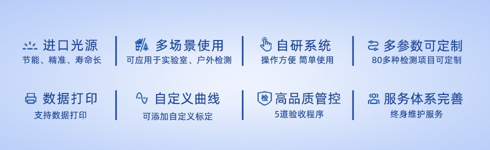 測定項目 | COD、氨氮、總磷、總氮、銅、鐵、鎳、六價鉻、磷酸鹽、亞硝酸鹽、PH、余氯等80多種參數,用戶可根據需要定制參數。 | ||