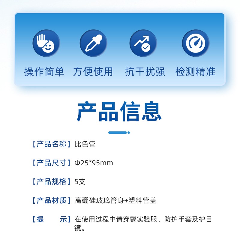 深昌鴻比色管(25mm×95mm)適用于CODMn、無機(jī)鹽、重金屬比色,透明、方便、美觀、配合牢固、使用效率高。耐高溫、高強(qiáng)度、高硬度、高透光率和高化學(xué)穩(wěn)定性。