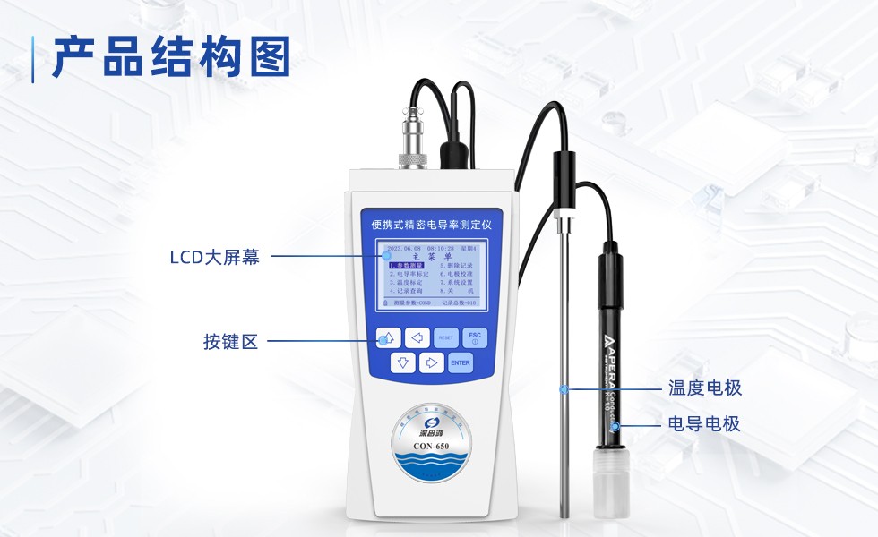 3. 支持測量電導(dǎo)率、鹽度、TDS和溫度。