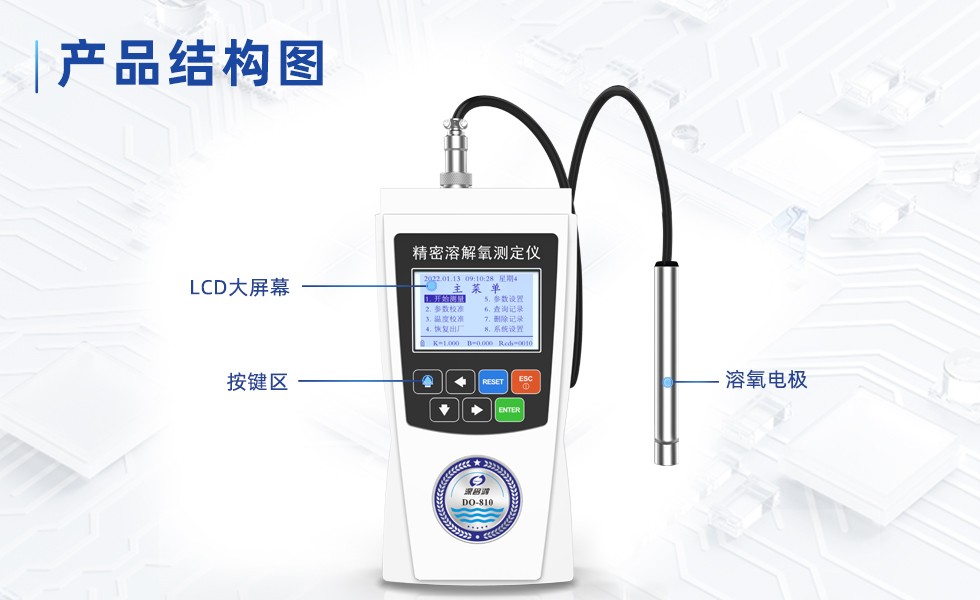 DO-810型便攜式溶氧儀采用超低功耗單片機測量和控制,采用熒光法測量。具有穩(wěn)定可靠、操作簡單方便等優(yōu)點;該儀器能以兩種溶解氧含量表示單位指示測定結(jié)果,即氧濃度(mg/L)和氧的飽和百分含量(%),此外還同時對被測介質(zhì)的溫度(℃)進行測量顯示。